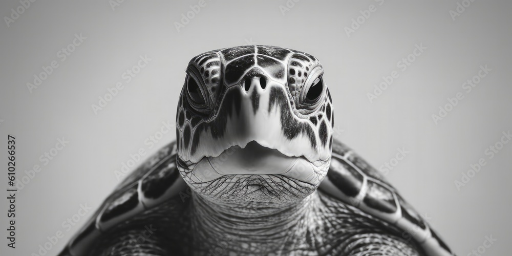 Samolepka Black and white portrait, close-up of a sea turtle, turtle, caretta caretta, bla