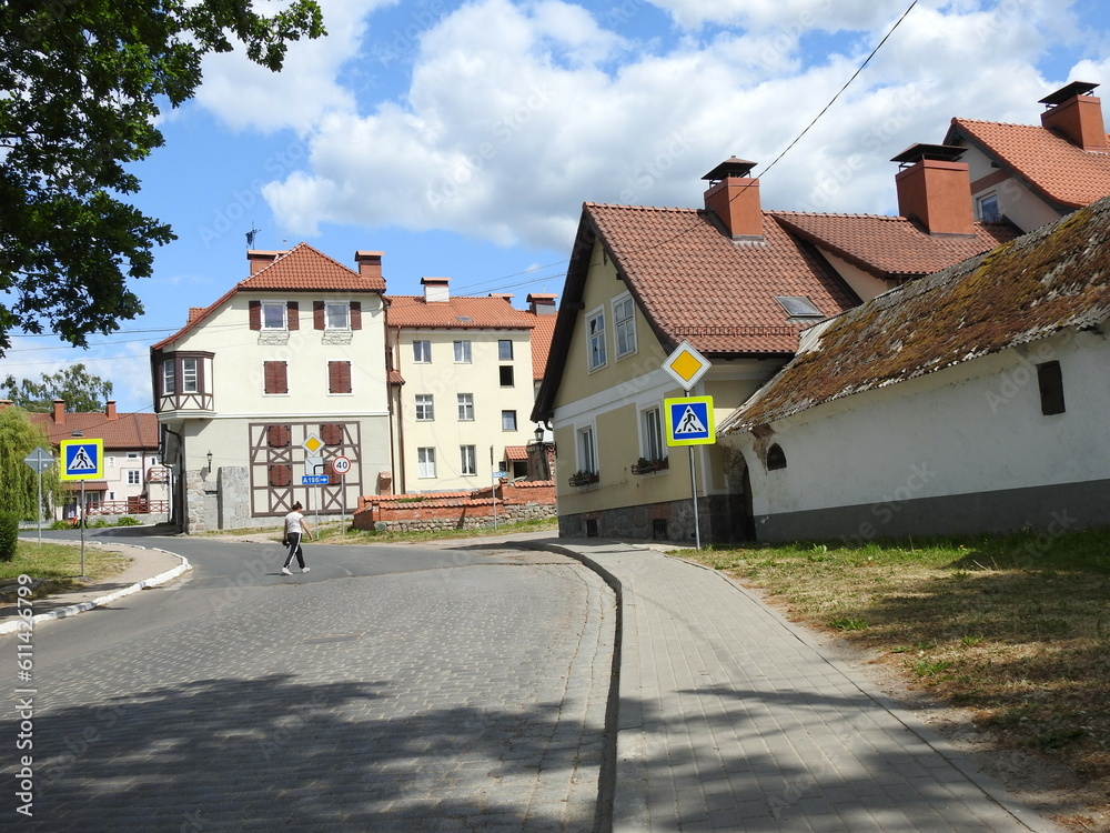 Samolepka cute medieval street in zheleznodorozhny, russia, former gerdauen, east prussia