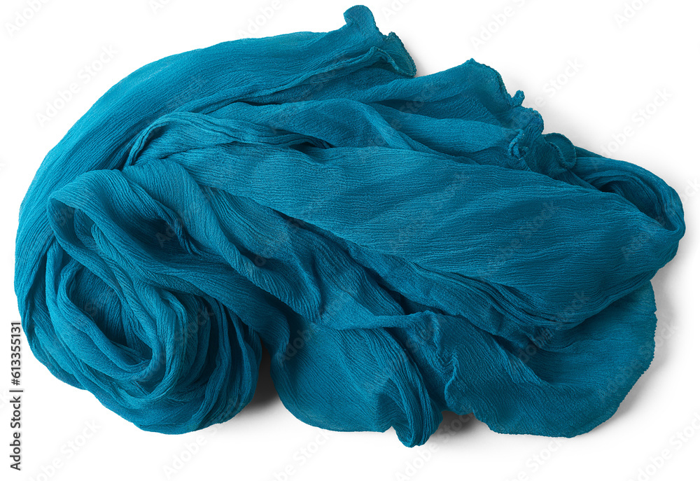 Samolepka blue women's shawl or scarf isolated background, pattern of fabric soft and cozy