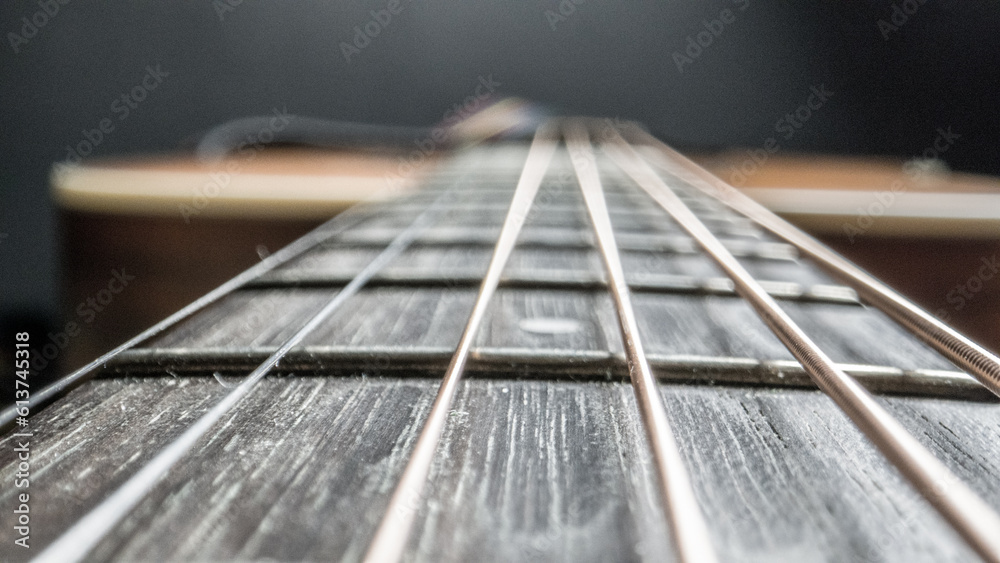 Samolepka Acoustic guitar close-up perspective view of neck to body
