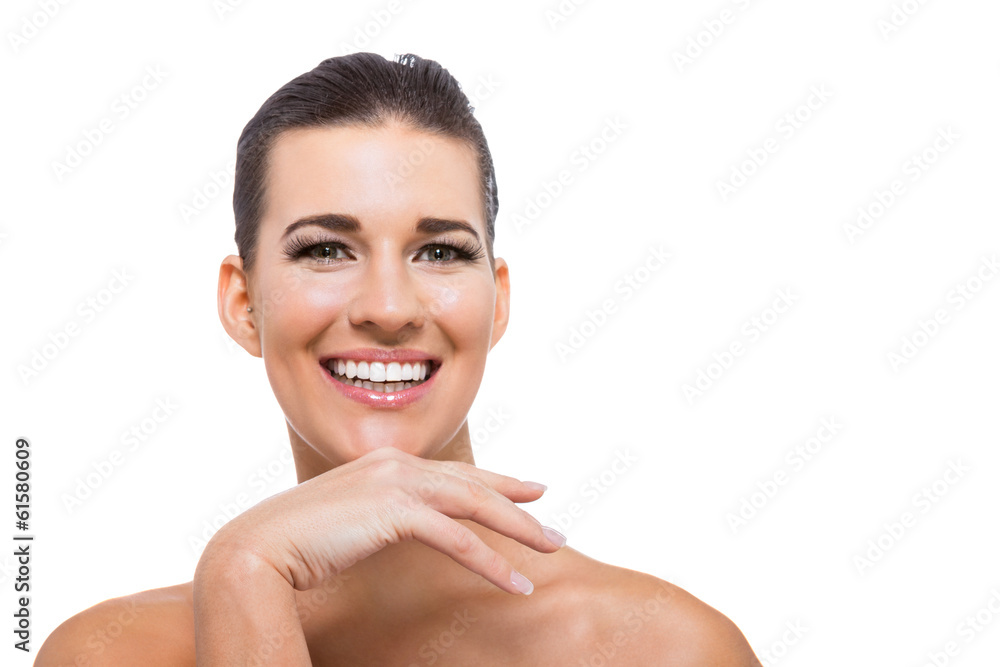 Samolepka schöne junge frau mit reiner haut portrait isoliert