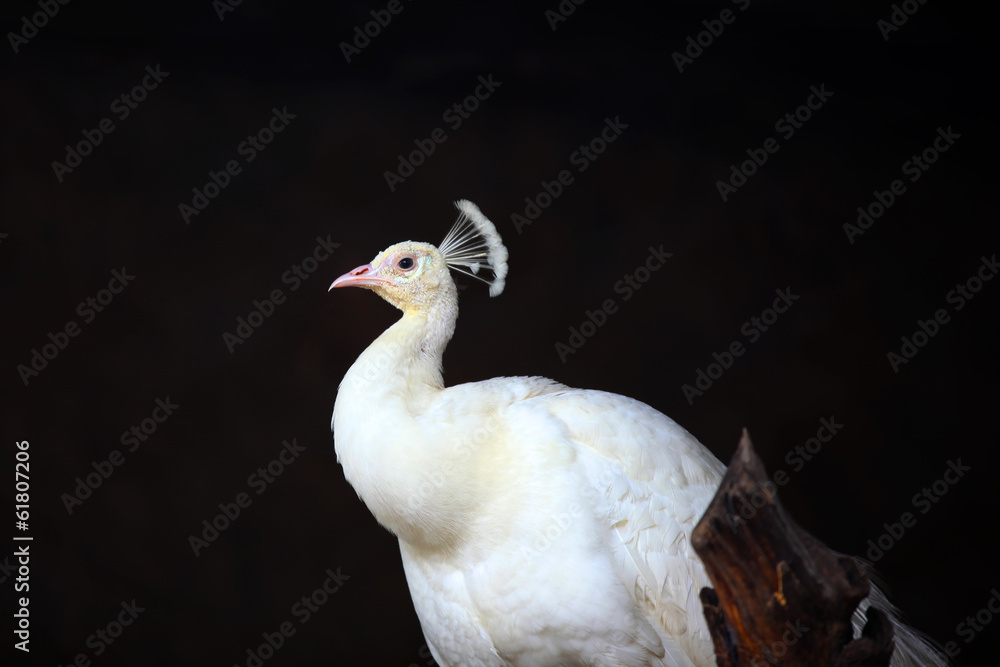 Samolepka White Peacock against black background