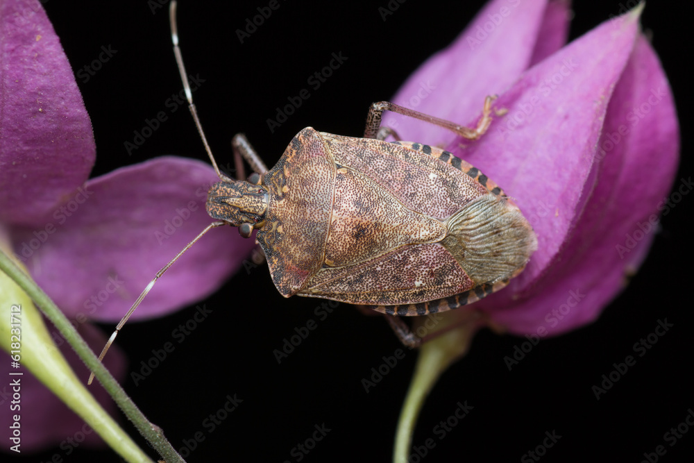 Samolepka A macro photo of a brown shield bug against black background