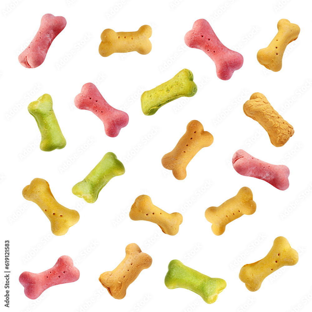 Samolepka Bones biscuits for dogs with different flavors on a transparent background