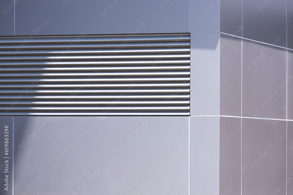 Samolepka Aluminium louver on gray aluminum composite tile wall of modern warehouse buildi