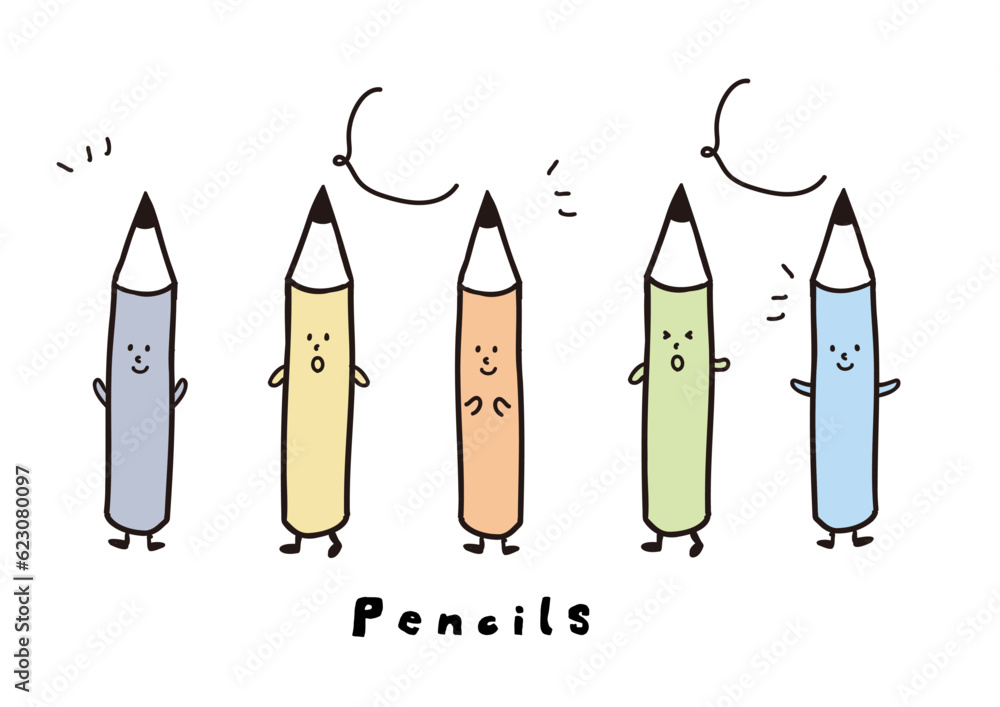 Samolepka かわいい色鉛筆のイラスト 勉強 らくがき 手書き カラフル キャラクター ベクター 顔 擬人化