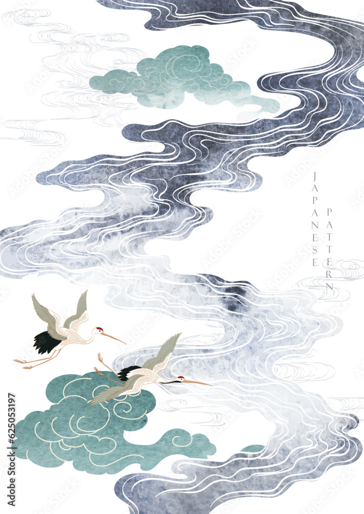Samolepka Japanese background with hand drawn wave grey texture vector