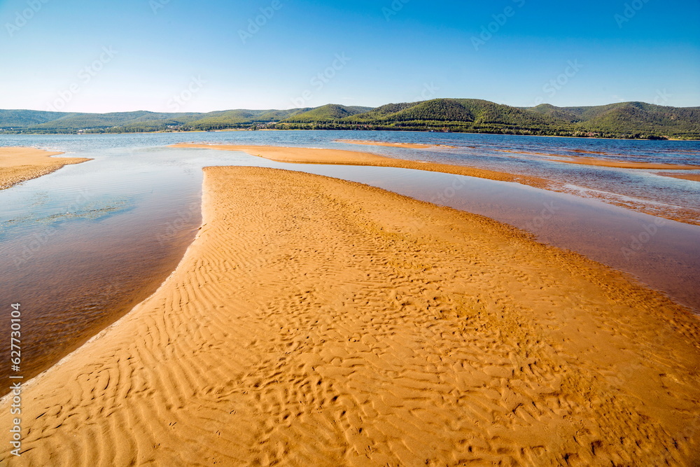 Samolepka beautiful sandy beaches shallows on the Volga river against the background of th