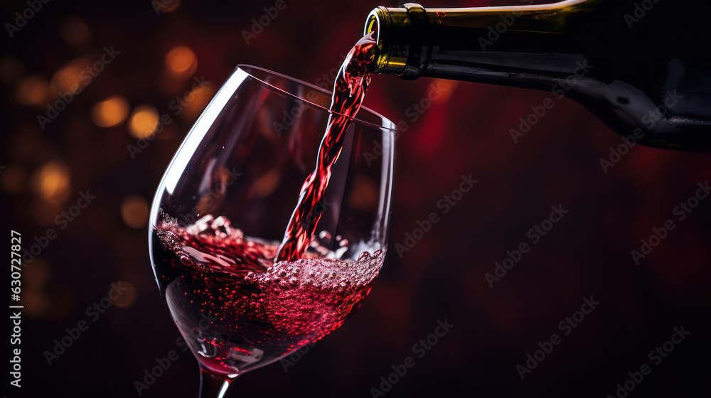 Samolepka Macro photo. Pouring red wine into a wineglass.