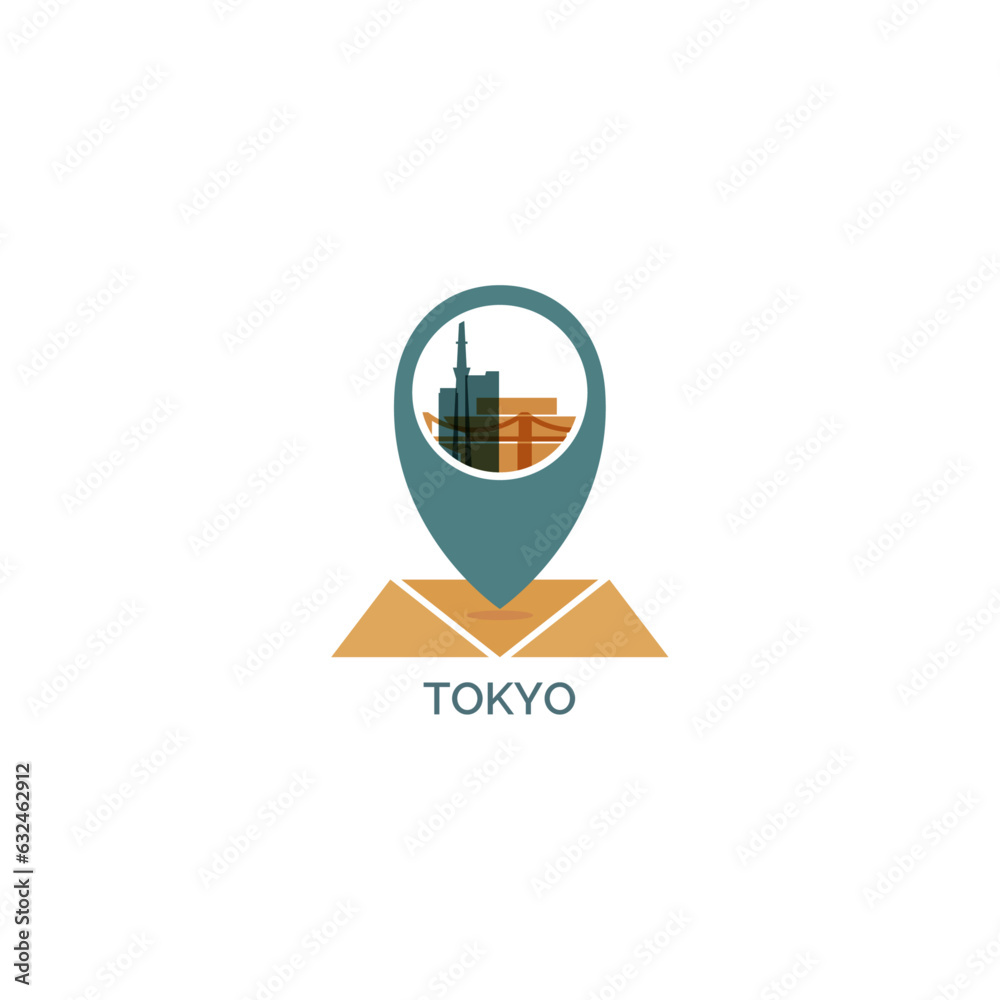 Samolepka Tokyo Japan city map pin point geolocation modern skyline shape pointer vector logo icon isolated illustration