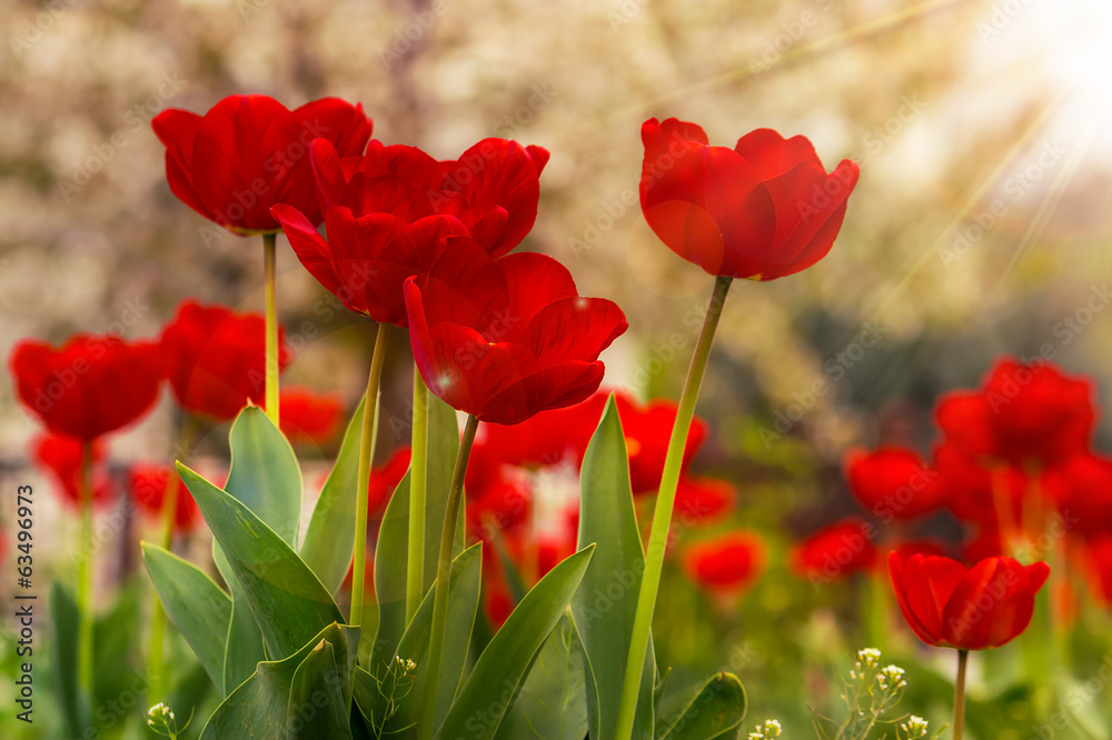 Samolepka orange tulip on color blurred background