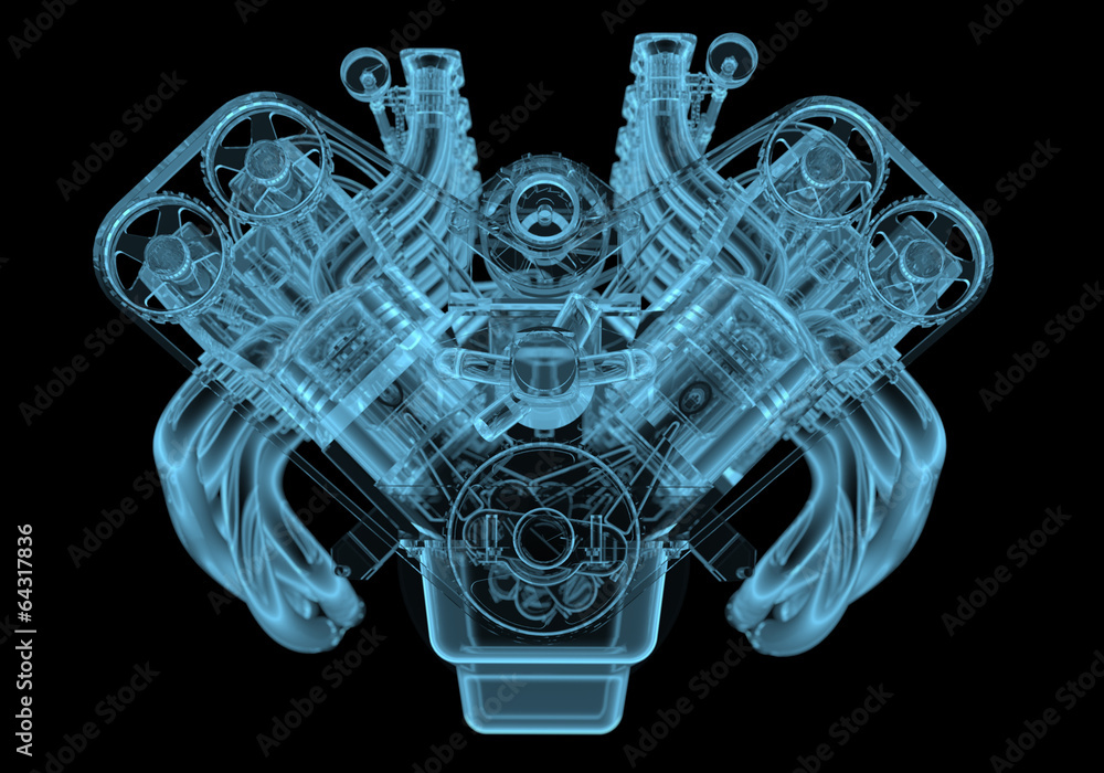 Samolepka Car engine x-ray blue transparent isolated on black
