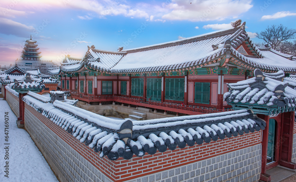 Samolepka Gyeongbokgung Palace in winter Seoul South Korea