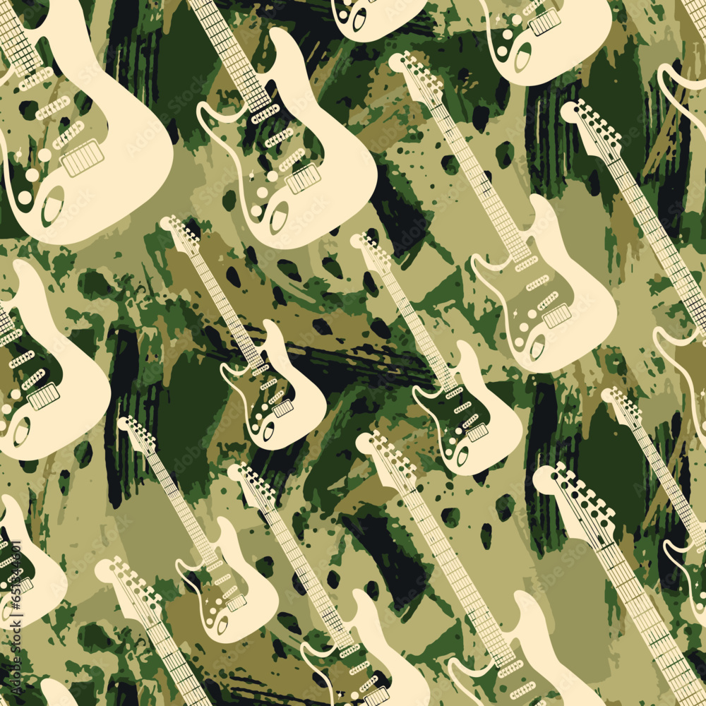 Samolepka Vintage electric guitar over dark green camouflage water color background effect