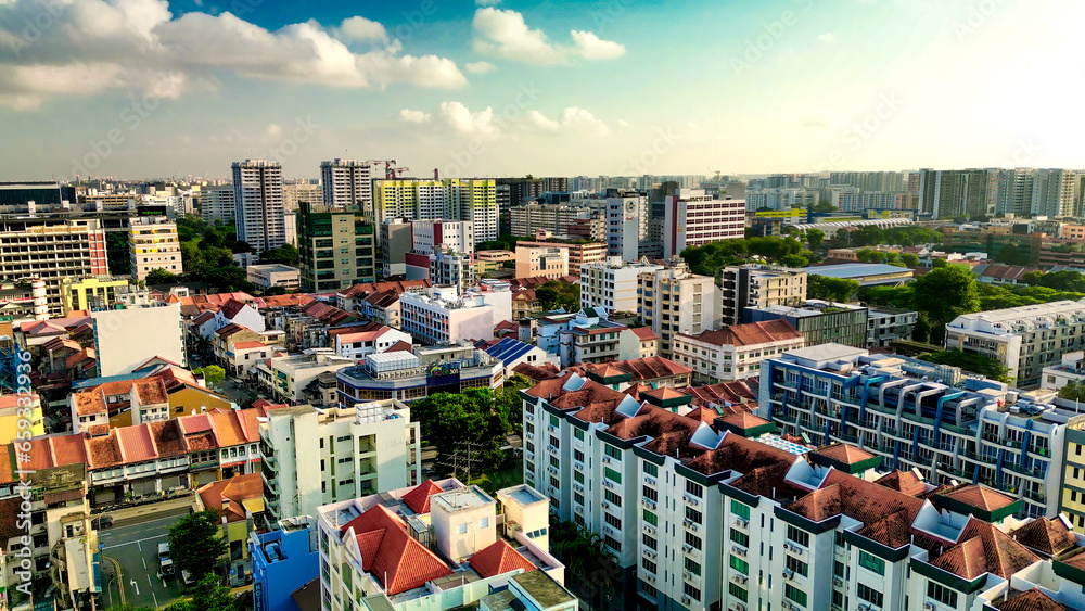 Samolepka Aerial view of Singapore buildings and skyline