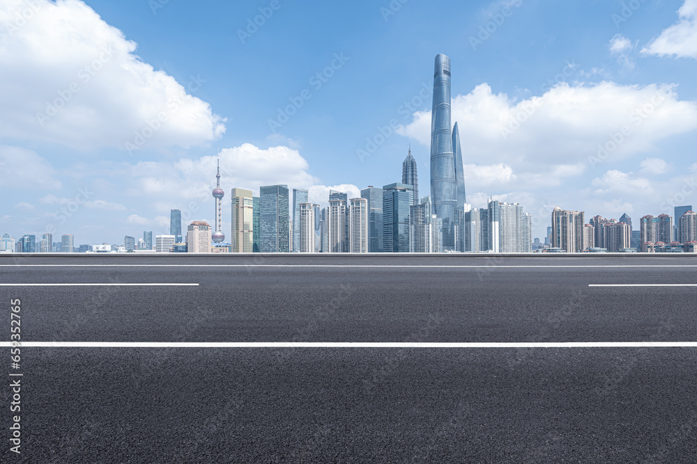 Samolepka financial district buildings of shanghai and empty highway in sunny day