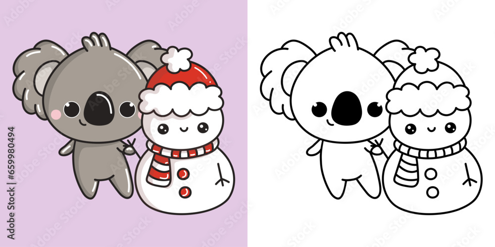Samolepka Kawaii Clipart Christmas Koala Bear Illustration and For Coloring Page