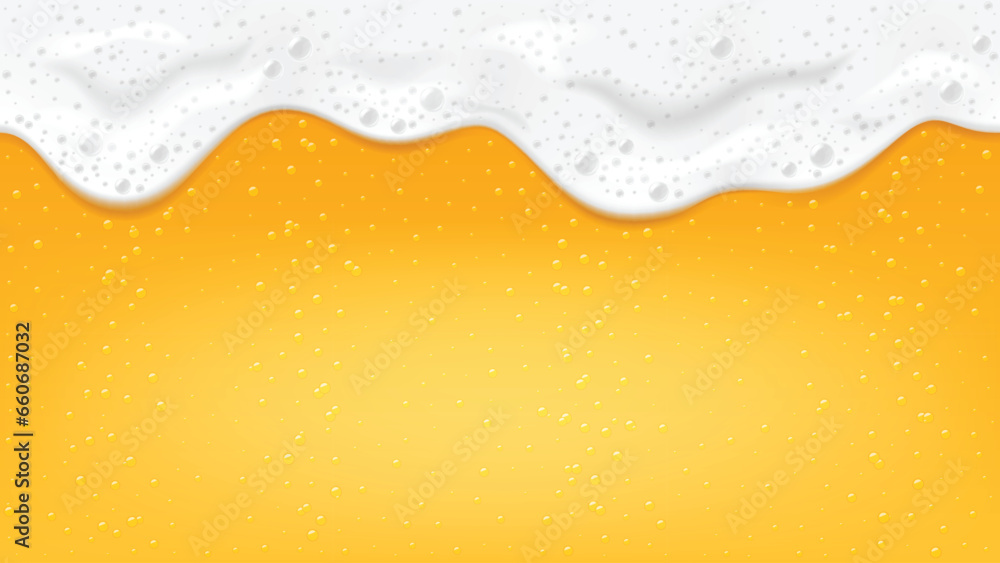 Samolepka Seamless vector background of realistic light lager beer with flowing foam and bubbles
