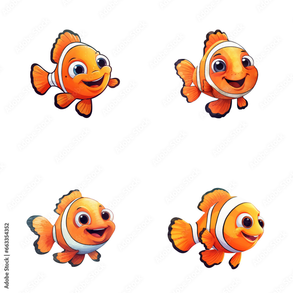 Samolepka set of happy cute clownfish watercolor illustrations for printing on baby clothe
