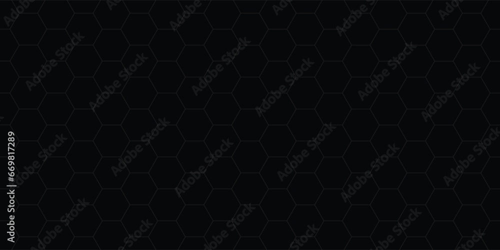 Samolepka Dark grey abstract wide horizontal banner with hexagon carbon fiber grid and orange luminous lines