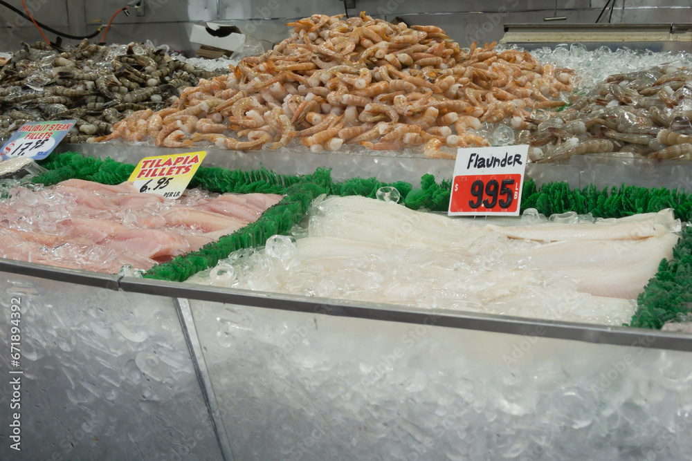 Samolepka Frozen Fish and Shellfish on Ice at the Warf Seafood Market in Washington, DC