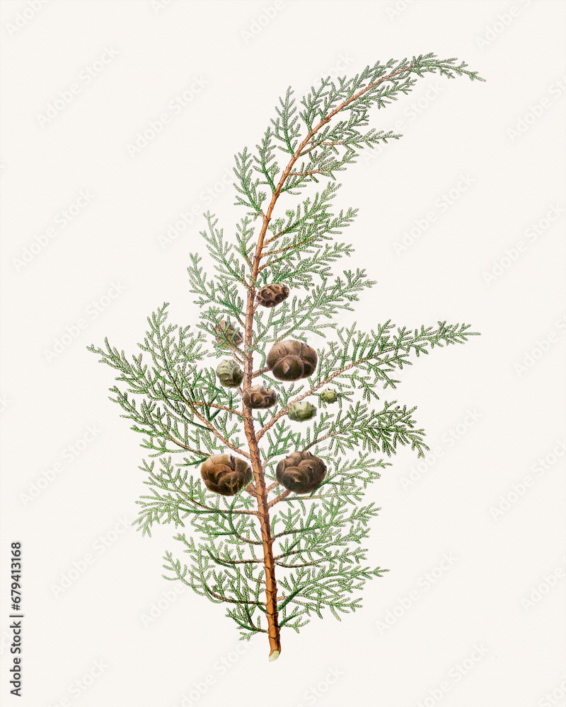 Samolepka Pine cone fruits: Botanical illustration inspired by a vintage style