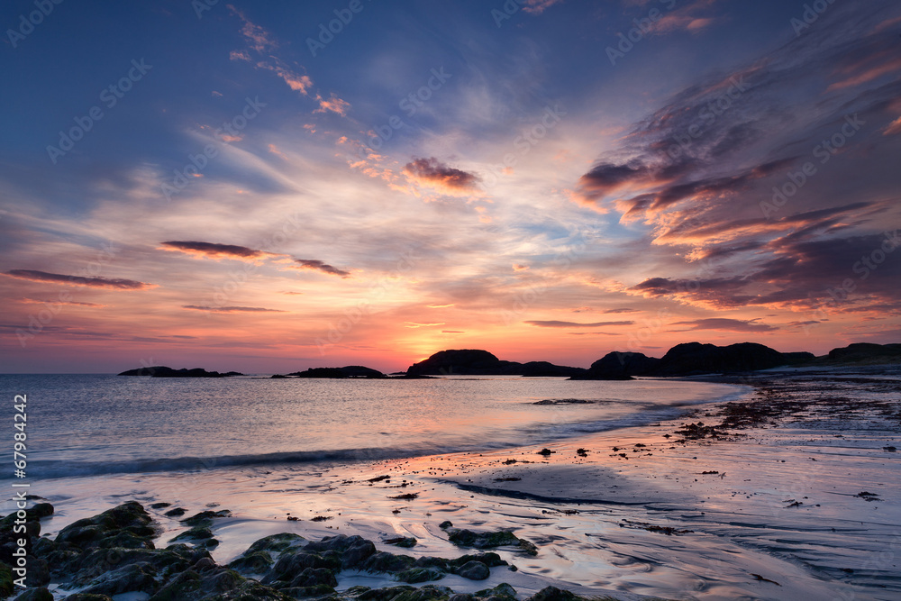 Samolepka Dramatic sky at sunset on the Isle of Iona, Scotland