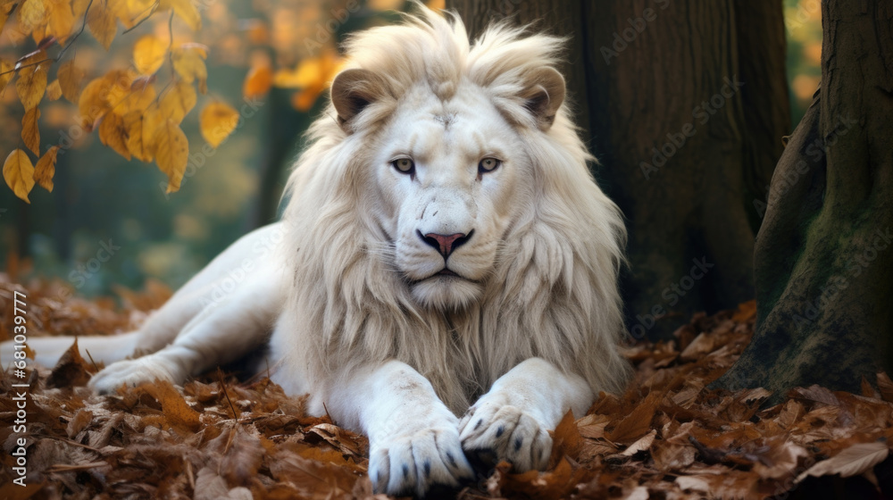 Samolepka Majestic white lion roaming freely in its natural habitat