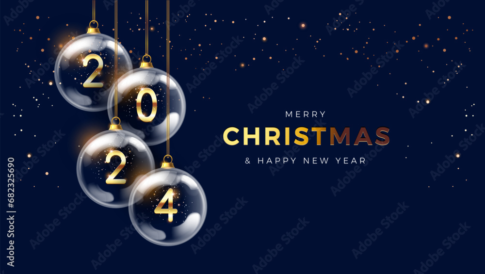 Samolepka 2024 Merry Christmas Happy New Year elegant gold and blue design