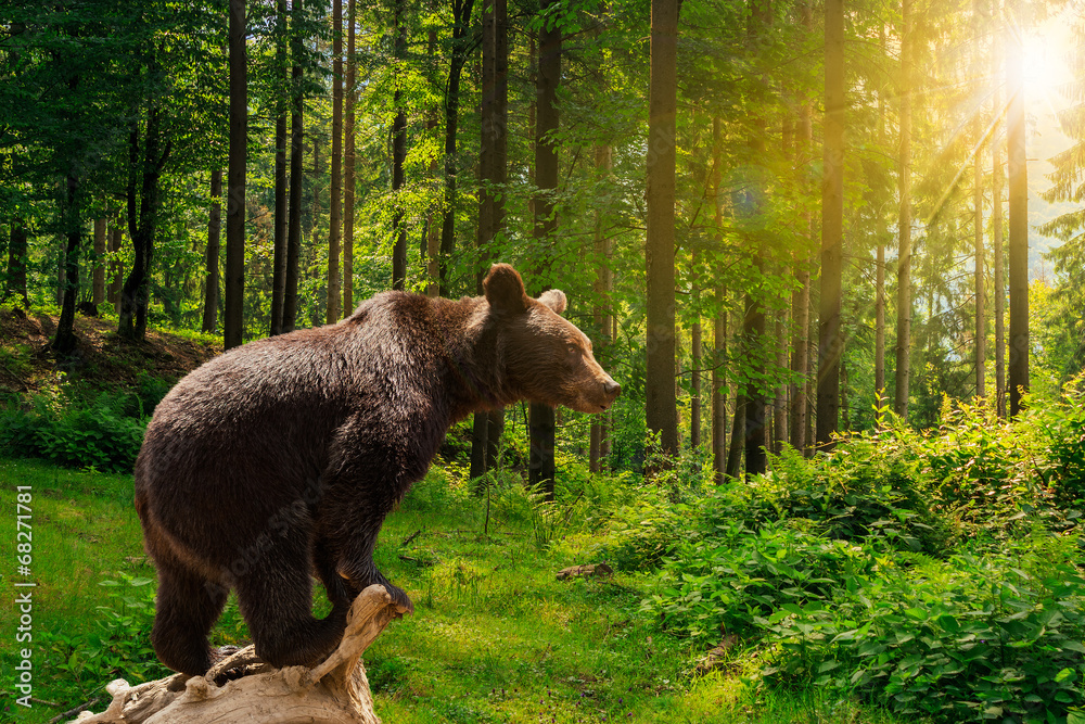 Samolepka curious little bear in the forest