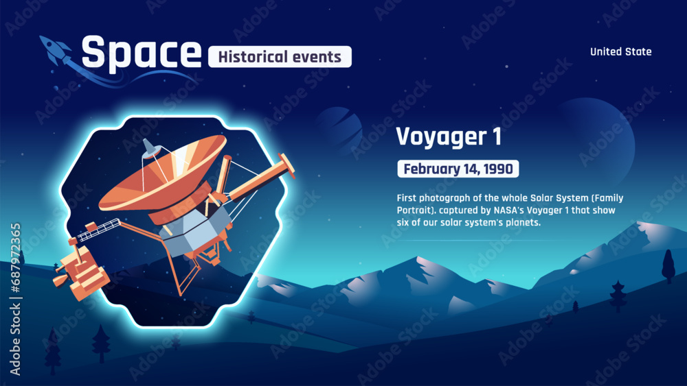Samolepka Voyager 1 Unveiling Space's Historic Events and Revolutionary Inventions-Vector
