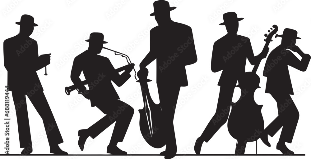Samolepka Elegant Sync Stick Figure Jazz Band Vector Illustration Bluesy Steps Jazz Musici