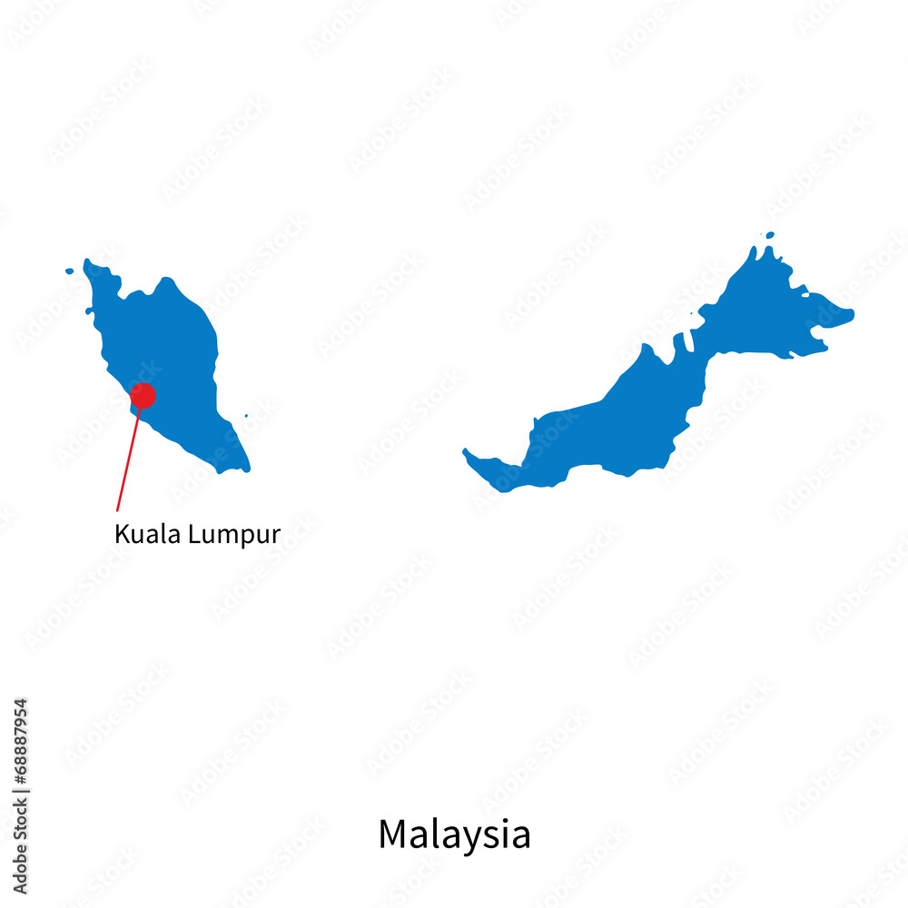 Samolepka Detailed vector map of Malaysia and capital city Kuala Lumpur