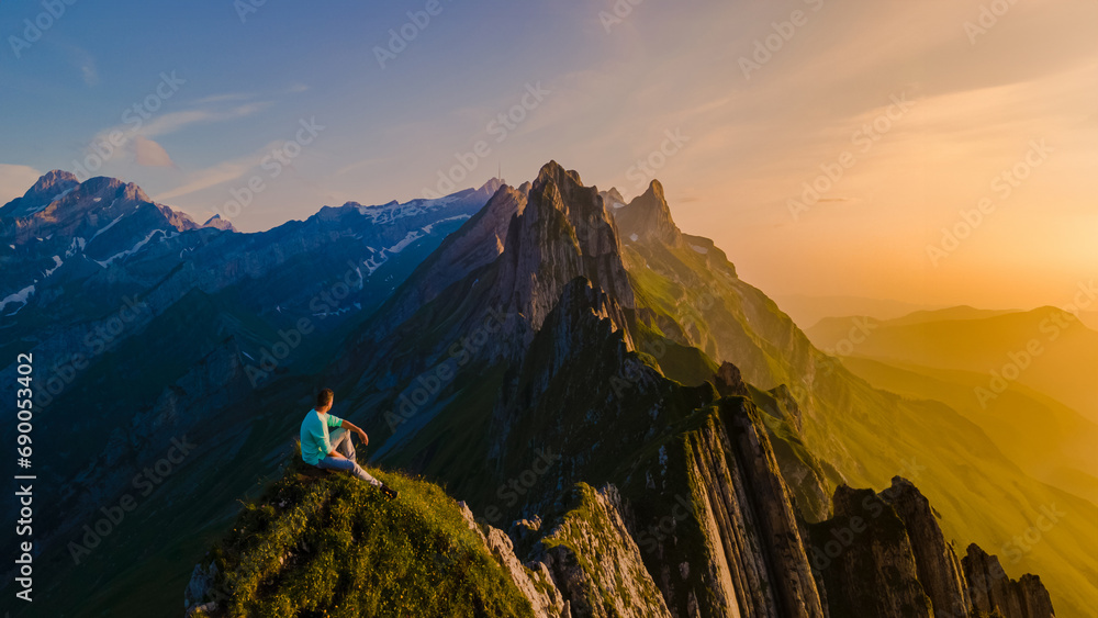 Samolepka Schaeffler Mountain Ridge Swiss Alpstein Appenzell Switzerland, a mountain ridge of the majestic Schaeffler peak by Berggasthaus Schafler Switzerland