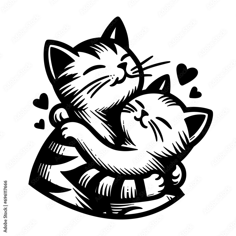 Samolepka cute romantic cuddle cats valentines day vector sketch