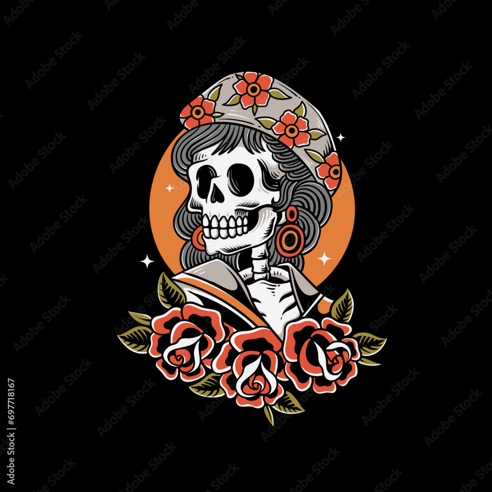Samolepka skeleton Vector old school tattoo vintage tattoo style illustration