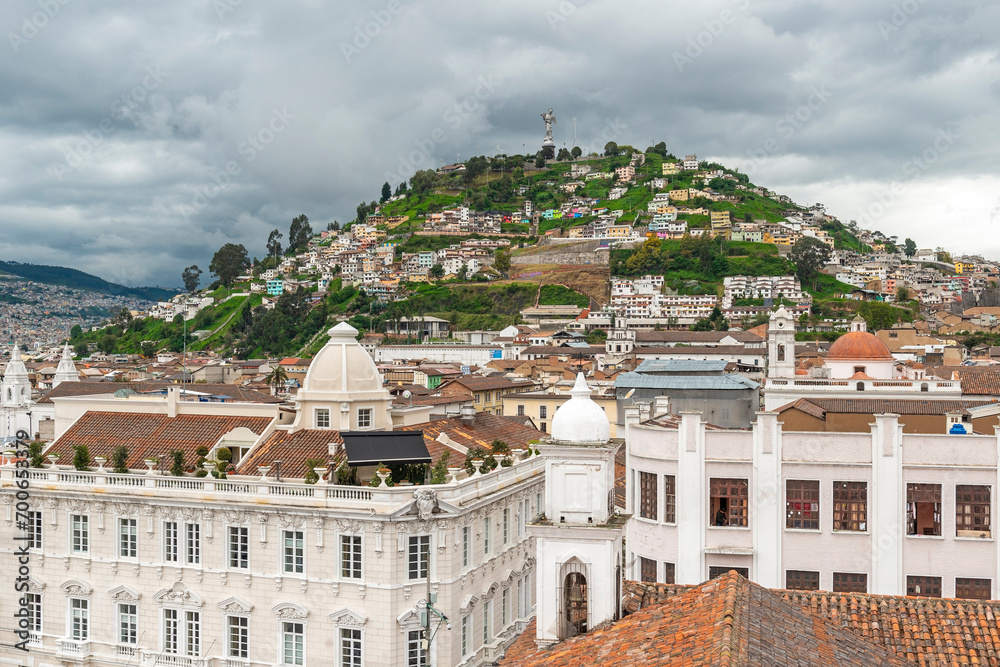 Samolepka Aerial Quito historic city center with dramatic clouds, Ecuador.