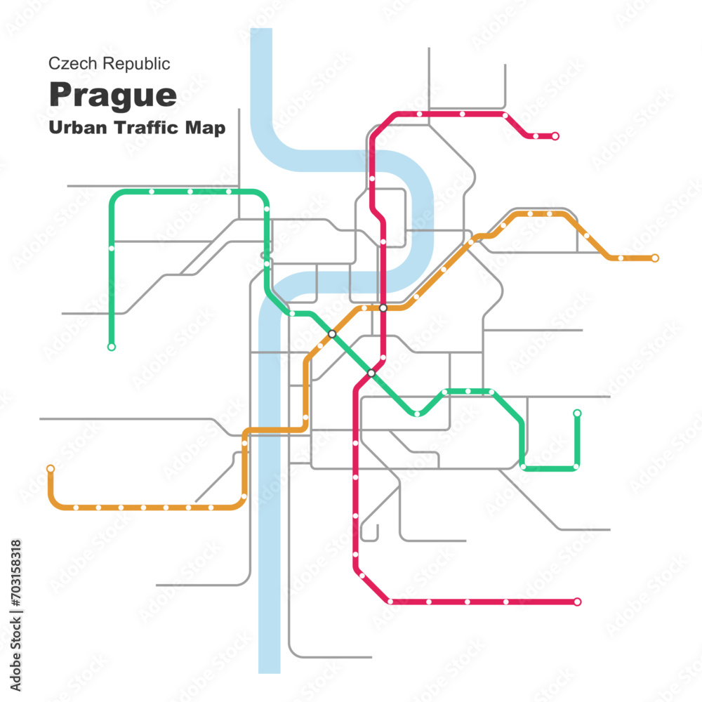 Samolepka Layered editable vector illustration of Urban Traffic Map of Prague,Czech Republ