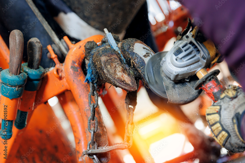 Samolepka Vet farmer man use equipment for cattle procedure pedicure health of hooves