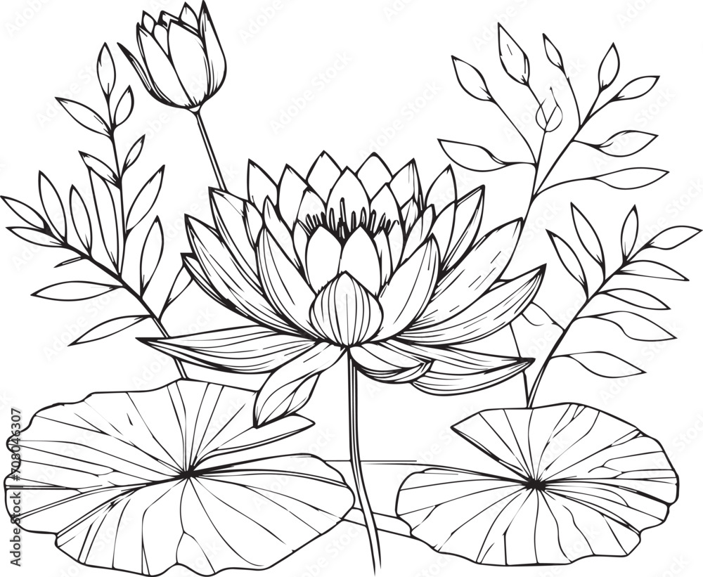 Samolepka silhouette of flower coloring pages, petal leaves of branch vector illustration,