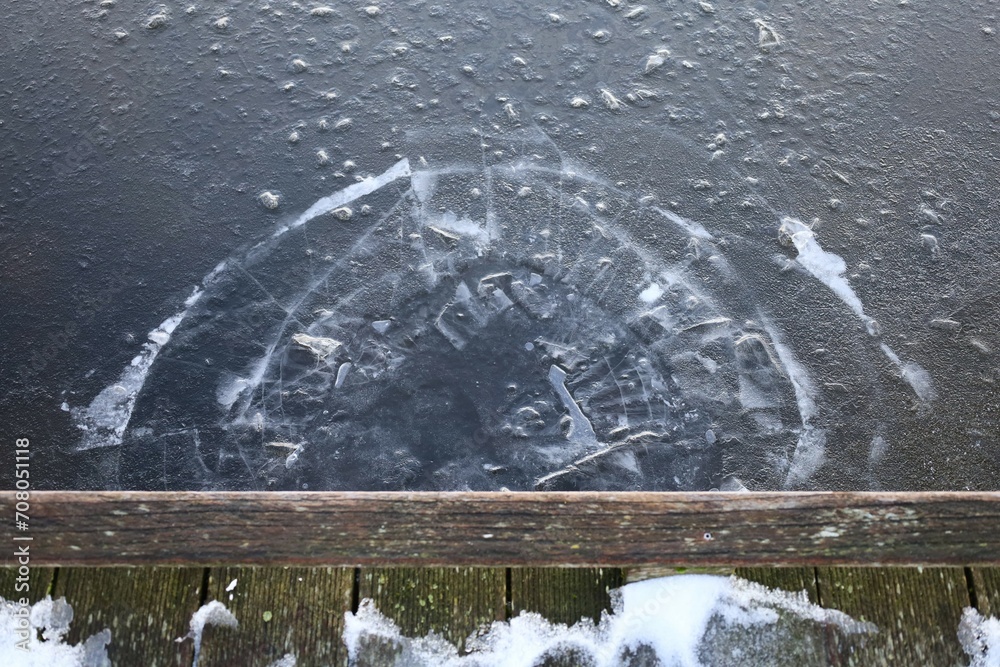 Samolepka Hole in the ice for winter bathers in front of wooden pier