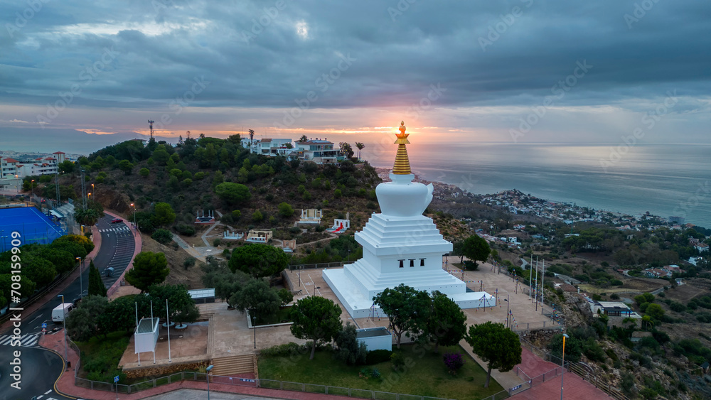 Samolepka amanecer en la estupa de la iluminación de Benalmádena, Andalucía