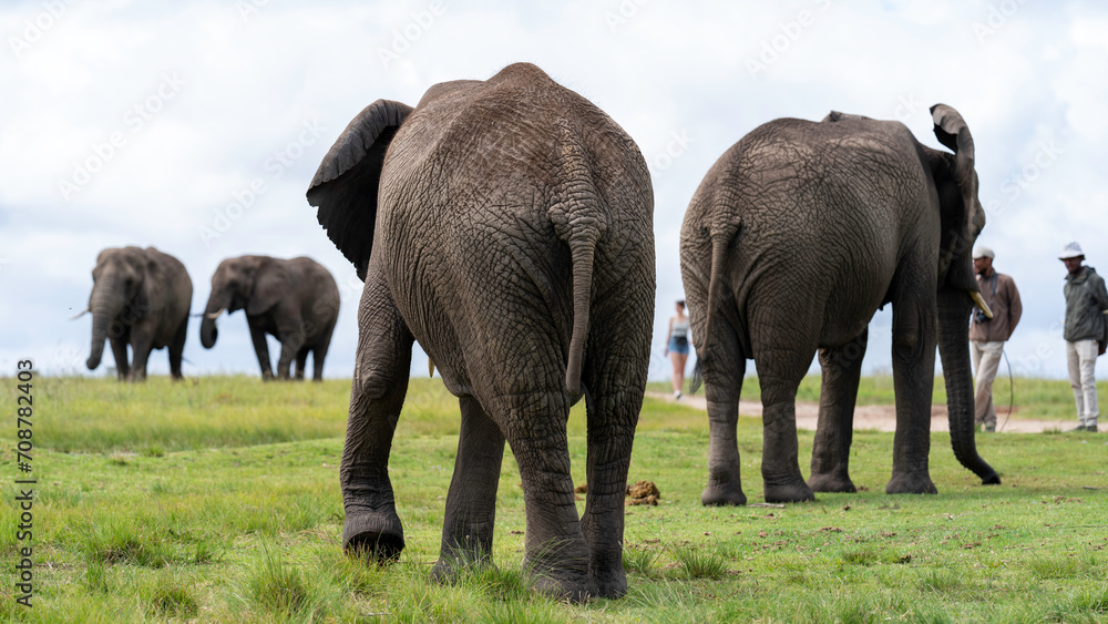 Samolepka Walking among elephants at Knysna Elephant Park, Garden Route, South Africa