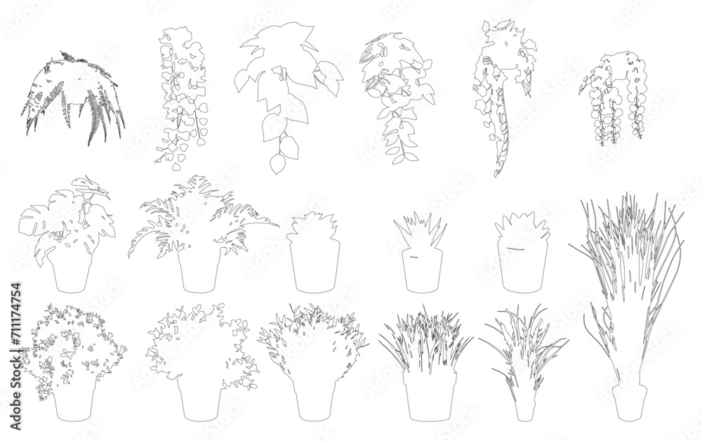 Samolepka Tropical Plants Silhouette Vector Illustration - Decorative Indoor houseplants i