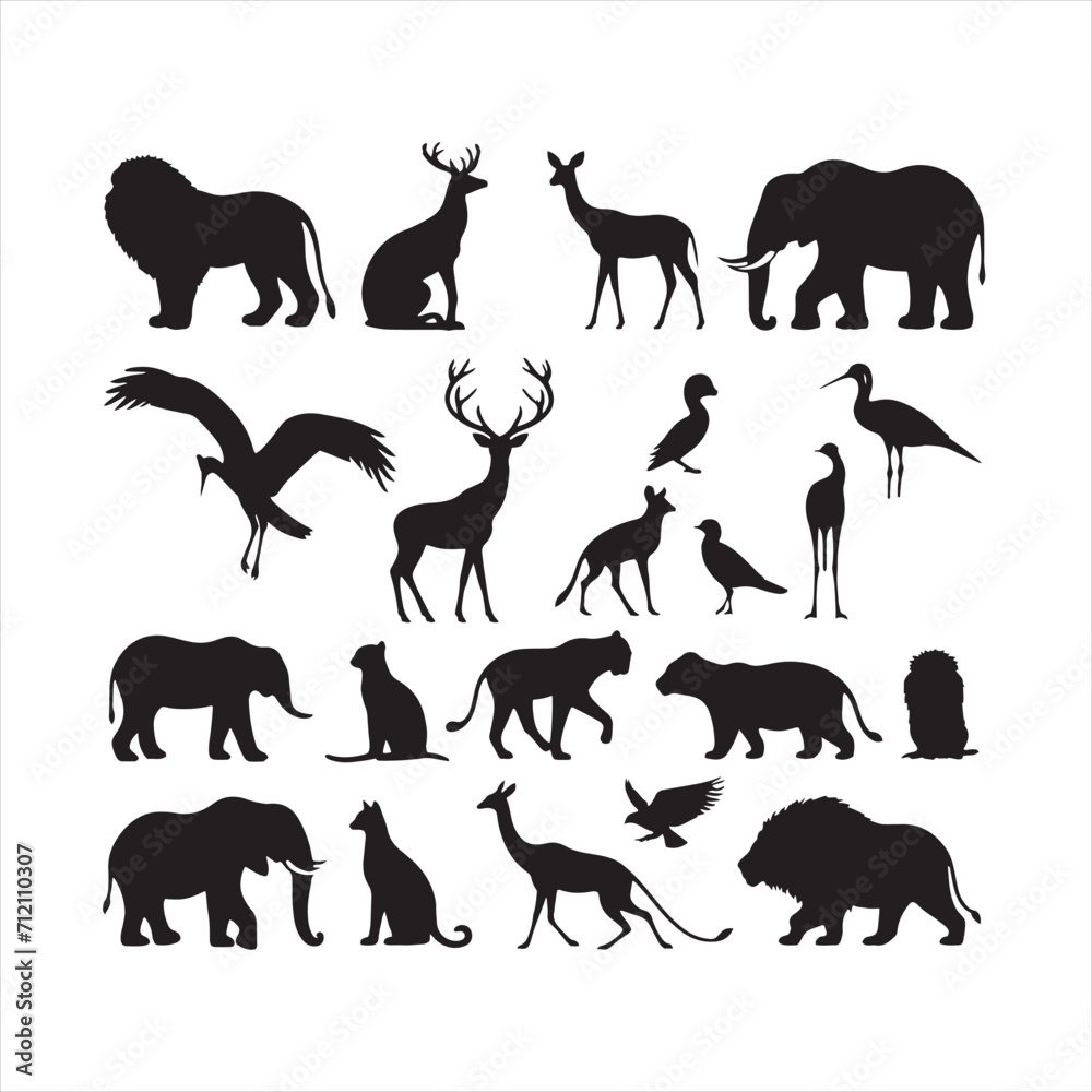 Samolepka Creatures in Shadows: Diverse Wild Animals Silhouette Set Portraying the Richnes