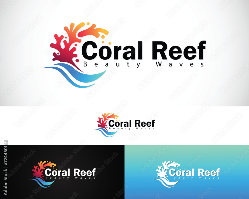 Samolepka coral reef logo creative design concept wave sea ocean beauty beach animal fish