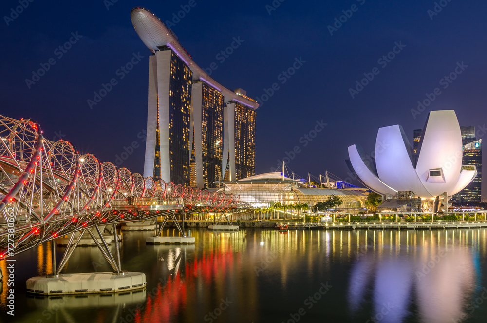 Samolepka Singapore Skyline during night with Marina bay in background