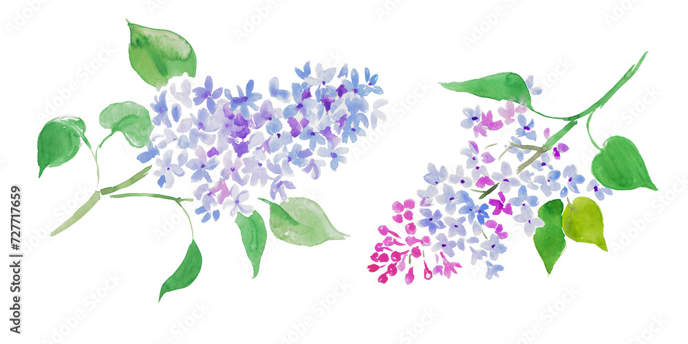 Samolepka Watercolor hand painted illustration of lilac, lilacs illustration, purple flow