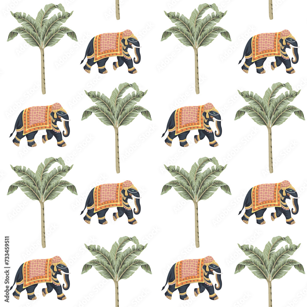Samolepka Indian elephants with palms seamless pattern. Oriental wallpaper.