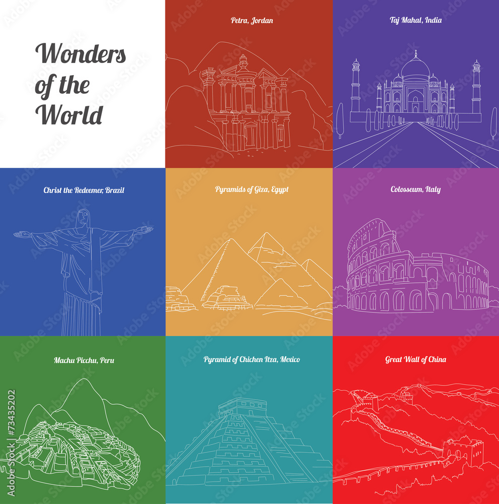 Samolepka Wonders of the World: Colosseum, Great Wall, Machu Picchu, Petra
